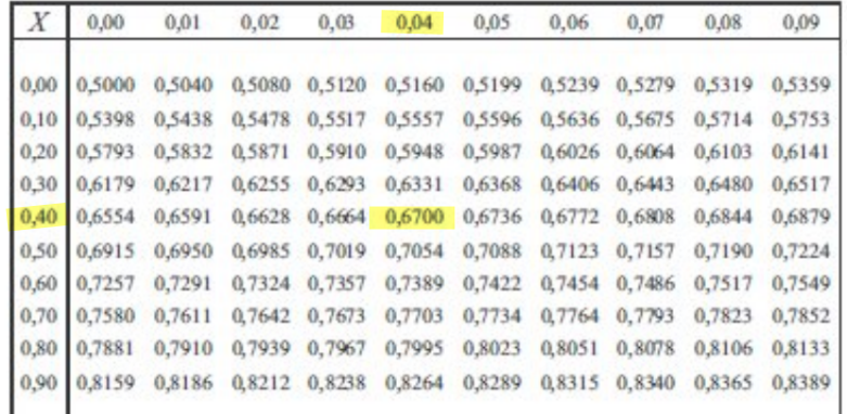 La notación \(Z_k\) representa el valor crítico de la distribución normal tal que el valor de \(Z\) deja una cola a la derecha de un \(k\%\). Es decir, si tuvieramos \(k=0.23\), deberíamos obtener \(1-k=1-0.23=0.67\), y al buscarlo en la siguiente tabla nos daría el valor \(0.44\).